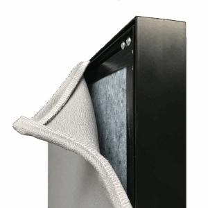 • Wand gevuld met gerecyclede en recyclebare textielvezels met een geluidsabsorptiewaarde van 0,95 aw (ISO 354)