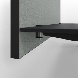 De akoestische voorzetwand is een praktische en stijlvolle oplossing voor meer rust op de werkplek. De voorzetwand is eenvoudig te bevestigen aan het tafelblad door middel van twee stevige bladklemmen. Het paneel begint 15 cm onder het blad waardoor je naast rust ook nog eens privacy creëert.