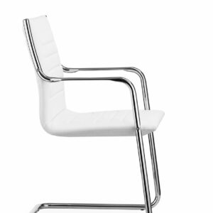 De herkenbare Classic visitor met haar exclusief vormgegeven sledeframe in matzwart of chroom. Het fraaie armleggerframe draagt een rondom gestoffeerde kuip die voorzien is van comfortabel koudschuim en fraaie stikselafwerking in lijnen.