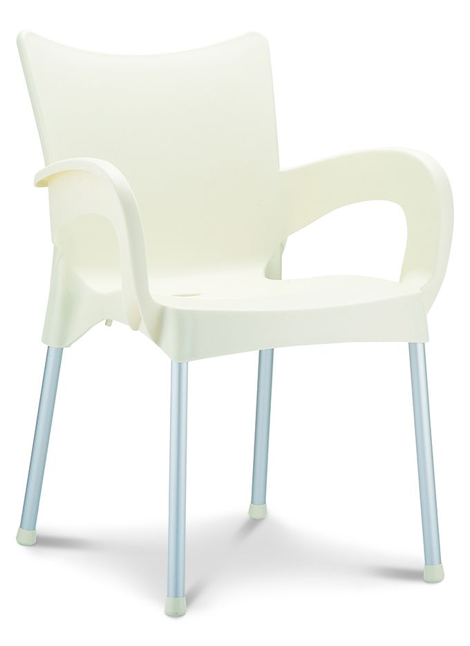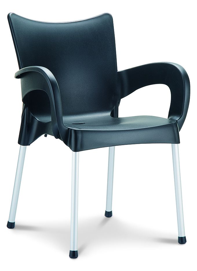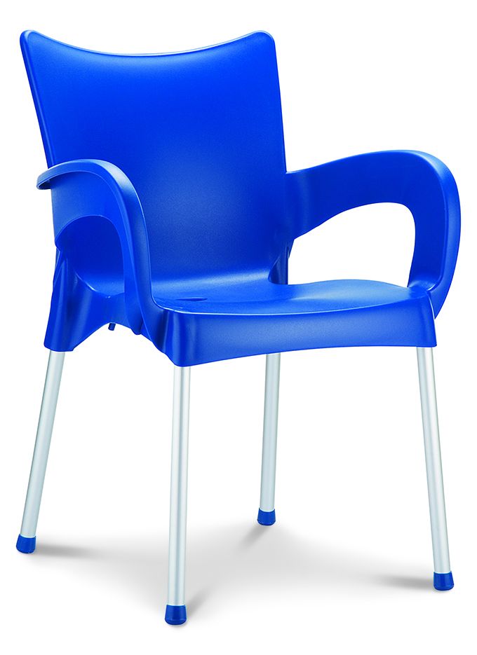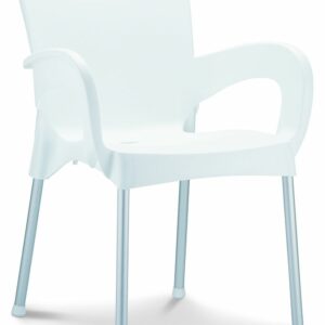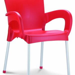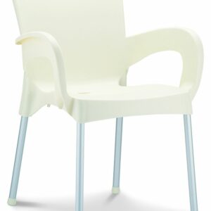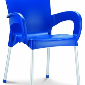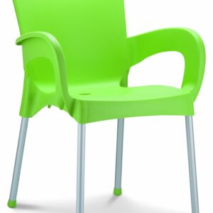 Stapelbare armstoel met een kunststof kuip van 100% recyclebaar polypropyleen en 25mm poten in geanodiseerd aluminium. Geschikt voor binnen en buiten. Snel leverbaar in 7 kleuren. Per stuk te bestellen. Gemonteerd geleverd.
