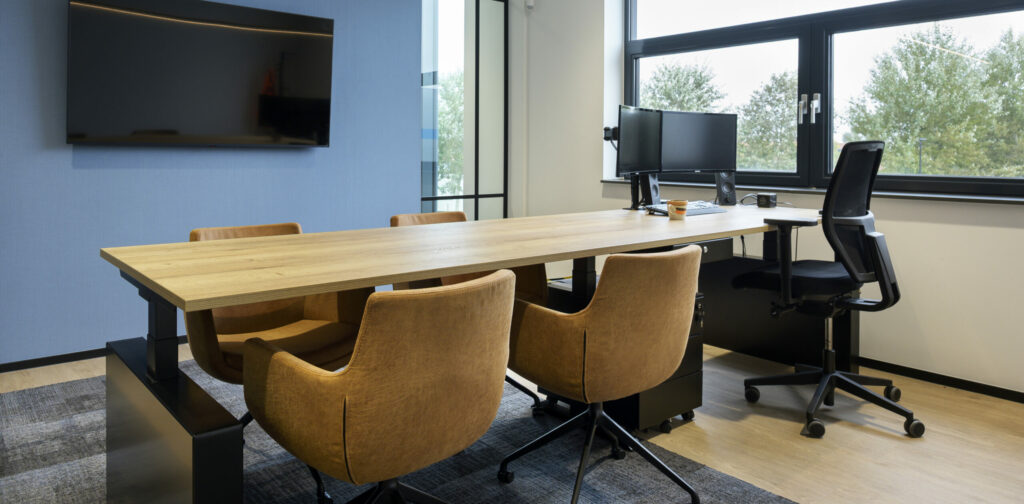 Kantoormeubilair: voor een efficiënte inrichting van de kantoren is gekozen voor een combinatie van enkele, duo en hoekbureaus. Alle bureaus zijn elektrisch in hoogte verstelbaar, en de ruimtes zijn voorzien van akoestische tussenwanden. Daarnaast zijn twee directiebureaus op maat gemaakt. In totaal zijn 32 werkplekken volledig conform de huidige NPR normen geleverd.